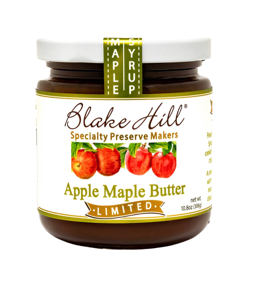 A traditional, elegant artisan butter with a maple accent, Limited Edition Apple Maple Butter has the flavor profile of heirloom apples - bold and crisp with juicy tartness. Slow-simmered in Vermont maple syrup, these apples become creamy and buttery with maple’s unique essence. Whether paired with classic cheddar, fresh baked scones, decadent pecan pie, or roast meats, Apple Maple Butter is one of Blake Hill's most versatile and beloved seasonal preserves.