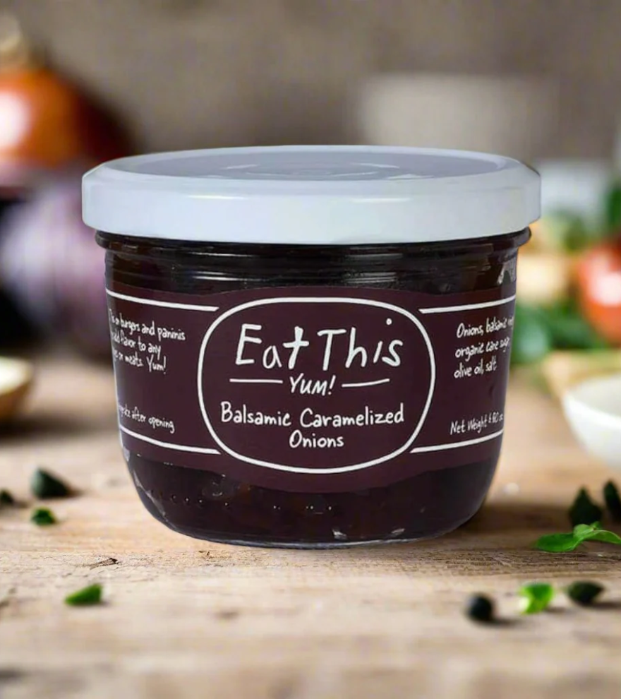 GREAT ON BBQ AND WITH SHARP CHEESES. Deep intense sweet onions caramelized with an aged balsamic to a smooth silky consistency. Starts delightfully tangy and finishes rich and sweet. Pairs with sharp cheeses, grilled vegetables, polenta and sandwiches. Ingredients: onions, balsamic vinegar , organic cane sugar, olive oil, salt.