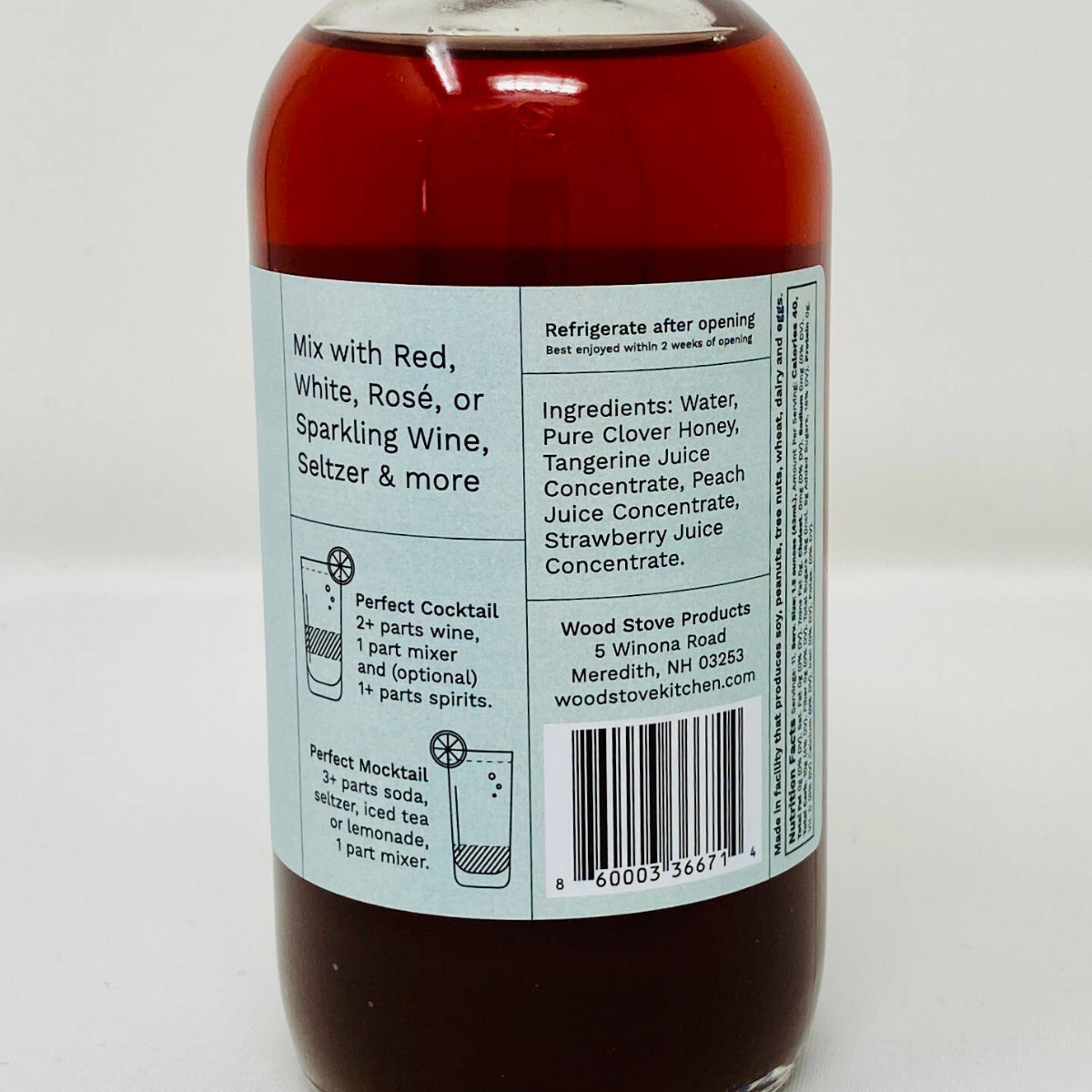 Sangria Mixer: Most sangria mixers are just cloudy orange juice concentrate and a bit of added flavors. For us, we use peach and strawberry concentrate along with clarified tangerine concentrate to get a smooth and luscious sangria mixer that is a lovely color. Just mix one cup of our mixer with one bottle of red wine, or put a dash into any cocktail that needs some added fruit flavors. It's great for making wine slushies as well.