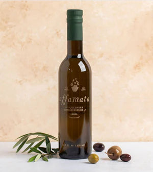 A medium intensity oil with low bitterness, strong pungency, and moderate fruitiness. It is quite complex, with several ripe, fruity flavors of butter, nuttiness, and apple – plus some bright, spicy, herbaceous flavors of mint, cinnamon, and chili pepper, especially green apple and black pepper. It is very nicely balanced and relatively fresh tasting.
