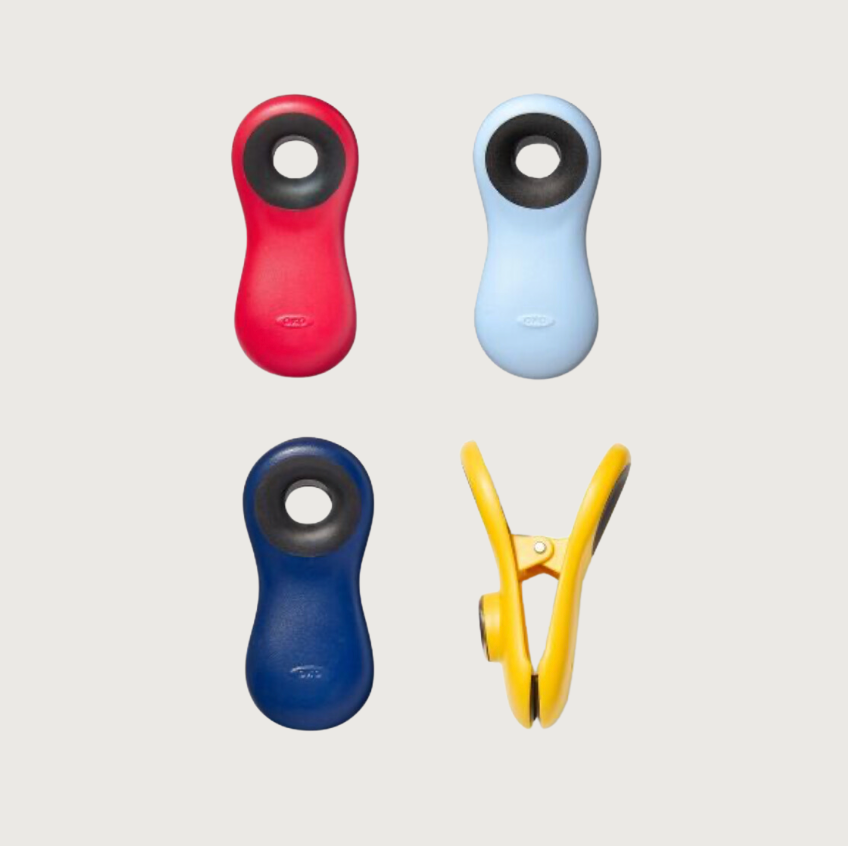 Our Clips feature sturdy plastic construction and soft, comfortable grips. Use them to seal bags, hold notes and organize papers. Non-slip mouths hold items securely and holes allow the clips to be hung on a nail, hook, peg or line. The magnet on the back allows for convenient storage or display.