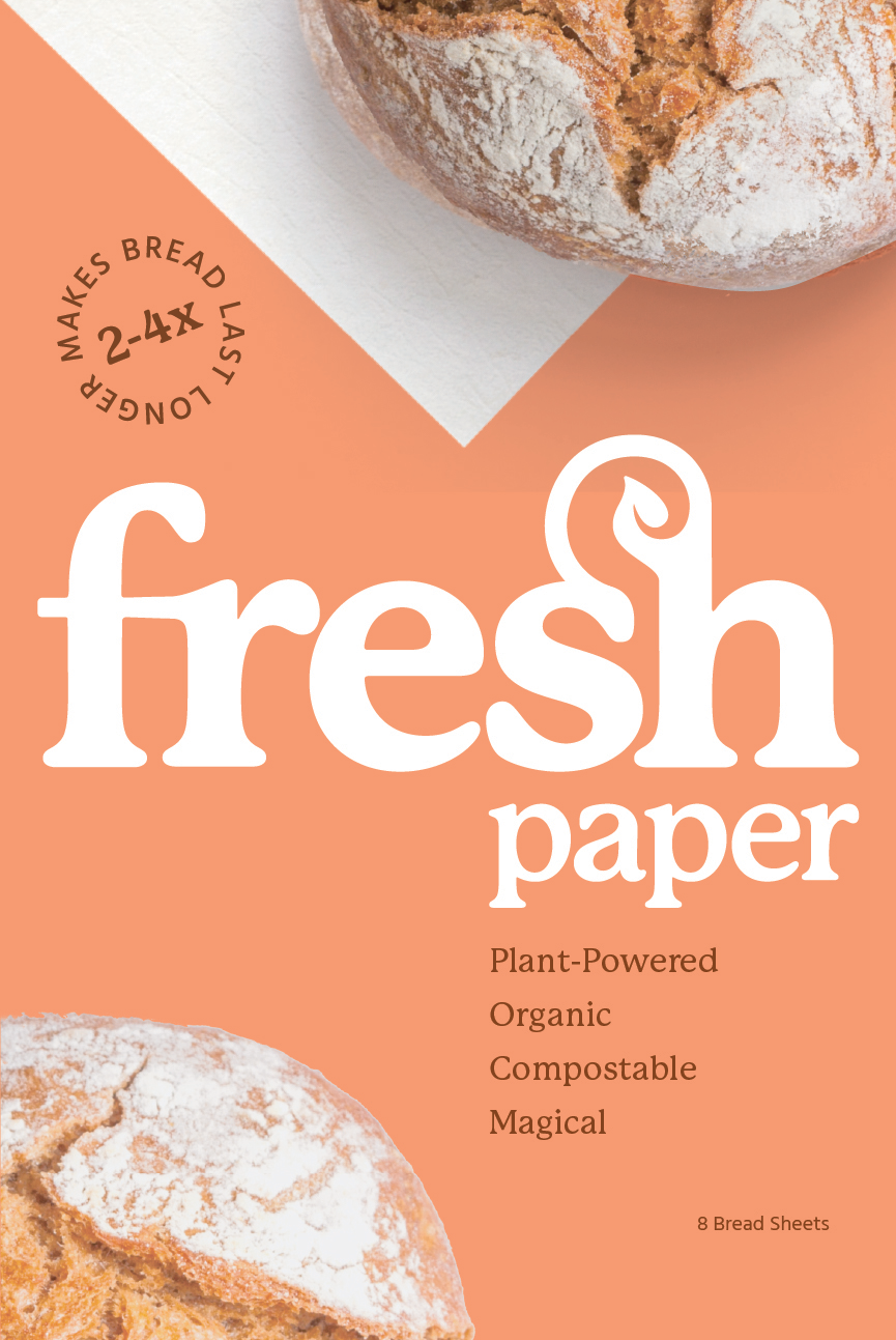 FRESHPAPER Food-Saver Sheets for Baked Goods keep fresh breads and bakery items fresh 2-4x longer. Completely natural product helps save money and reduce food waste. Each Pack contains 8 reusable sheets. Recyclable, Compostable, BPA -free, plastic-free, made with organic botanicals, made in the USA. Just add a sheet anywhere fresh bread, bagels, muffins, cookies or any other fresh bakery item is stored.