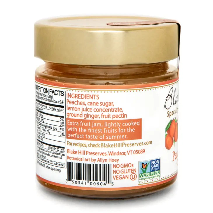 Made with: Peaches, pure cane sugar, lemon juice concentrate, ginger, fruit pectin (10oz)